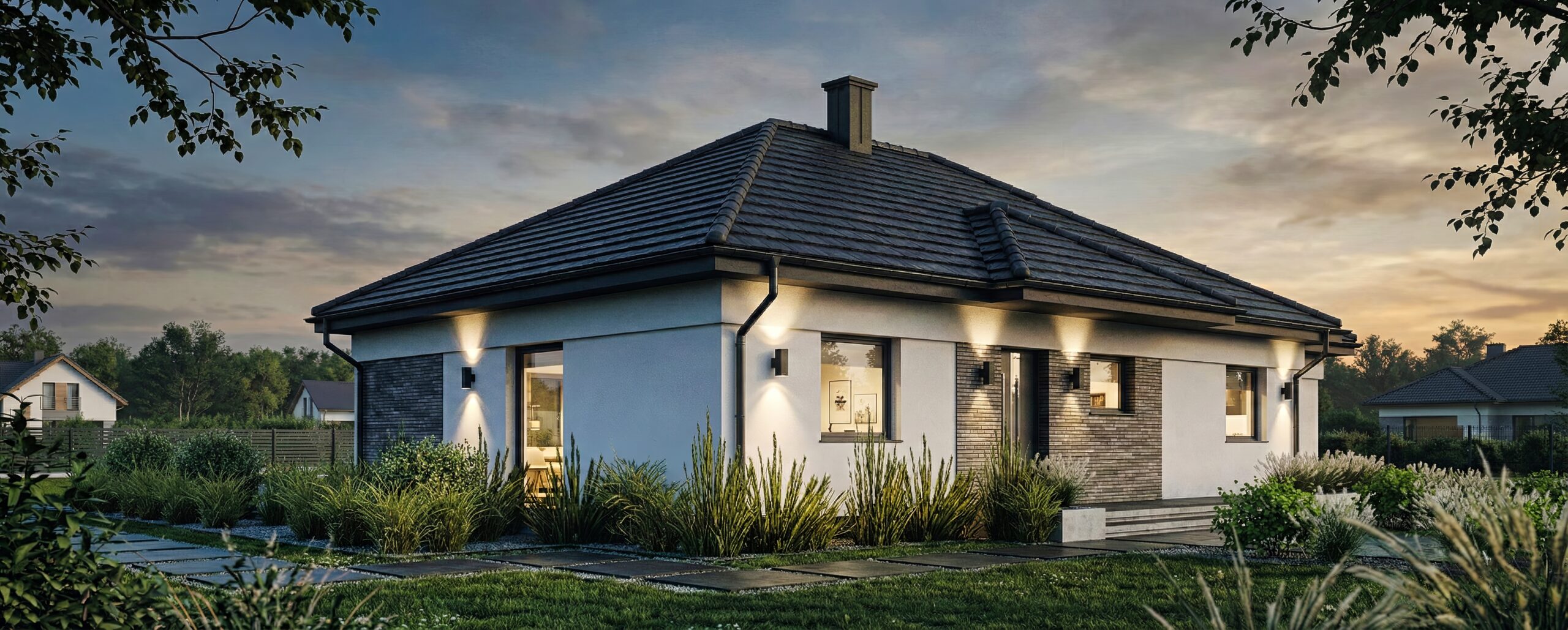 To propozycja dla osób szukających domu o wysokim standardzie w przystępnej cenie, który powstaje szybko i bez problemów. Projekt będzie idealny dla rodzin z dziećmi, inwestorów budujących dom pod wynajem, jak również par szukających funkcjonalnego domu parterowego z gabinetem do pracy lub potencjałem na zwiększenie członków rodziny .